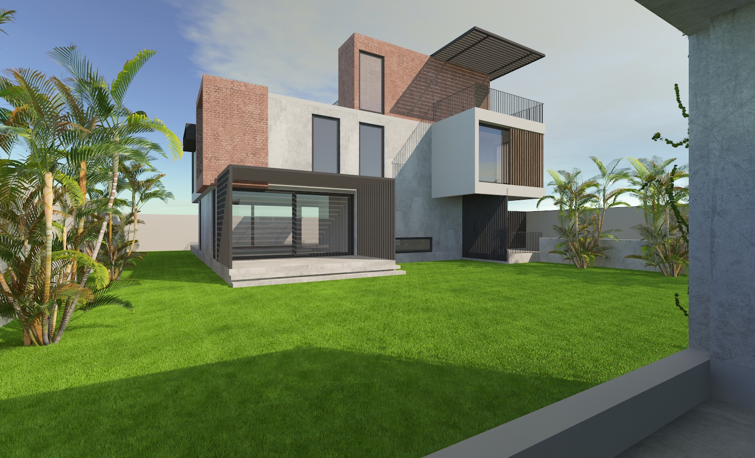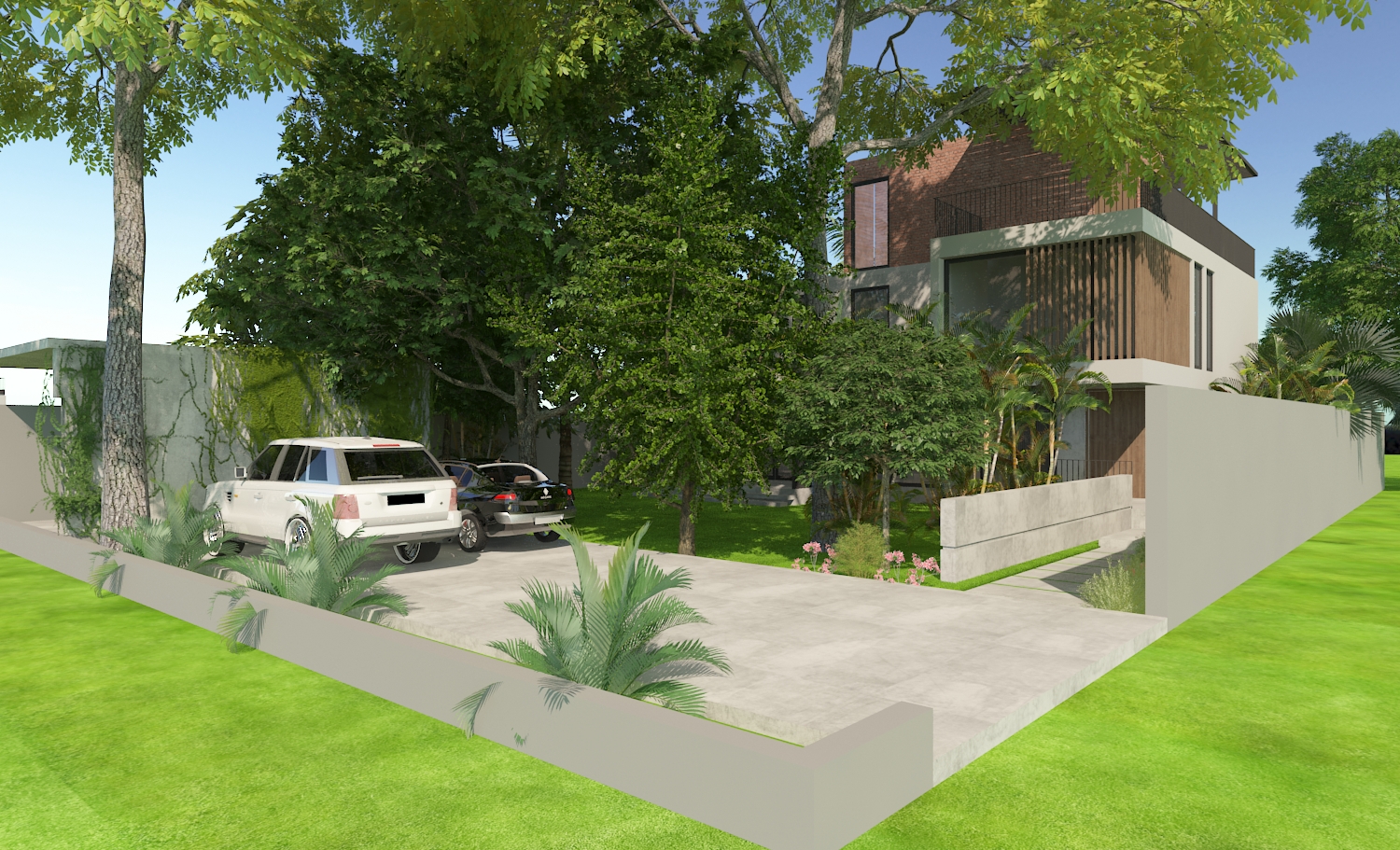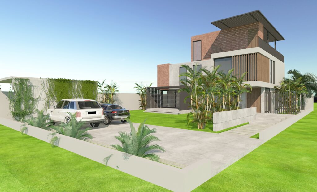 A House in Nature is a project that sets the tone for modern home living. The architecture maximises the intent of the client’s needs and does not make itself anything more. Refined lines, contouring geometry and mixed materials sweeping through the cubic forms while providing views, ample parking spaces and shade for a holistic living.