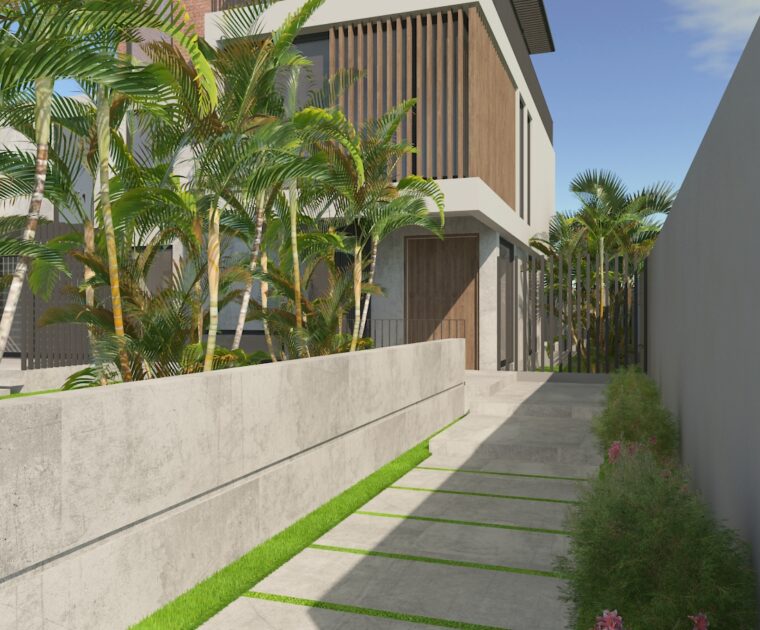 A House in Nature is a project that sets the tone for modern home living. The architecture maximises the intent of the client’s needs and does not make itself anything more. Refined lines, contouring geometry and mixed materials sweeping through the cubic forms while providing views, ample parking spaces and shade for a holistic living.